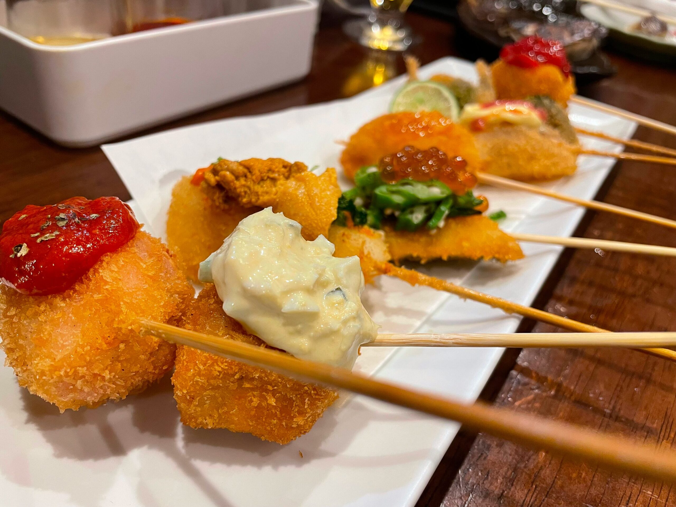 新太の串揚げは、驚くほど軽やかで奥深い味わい。