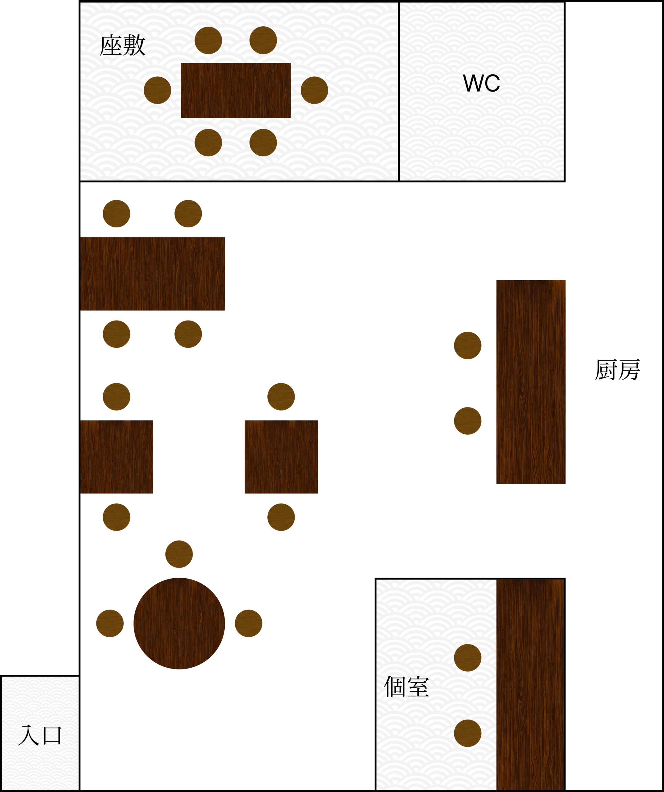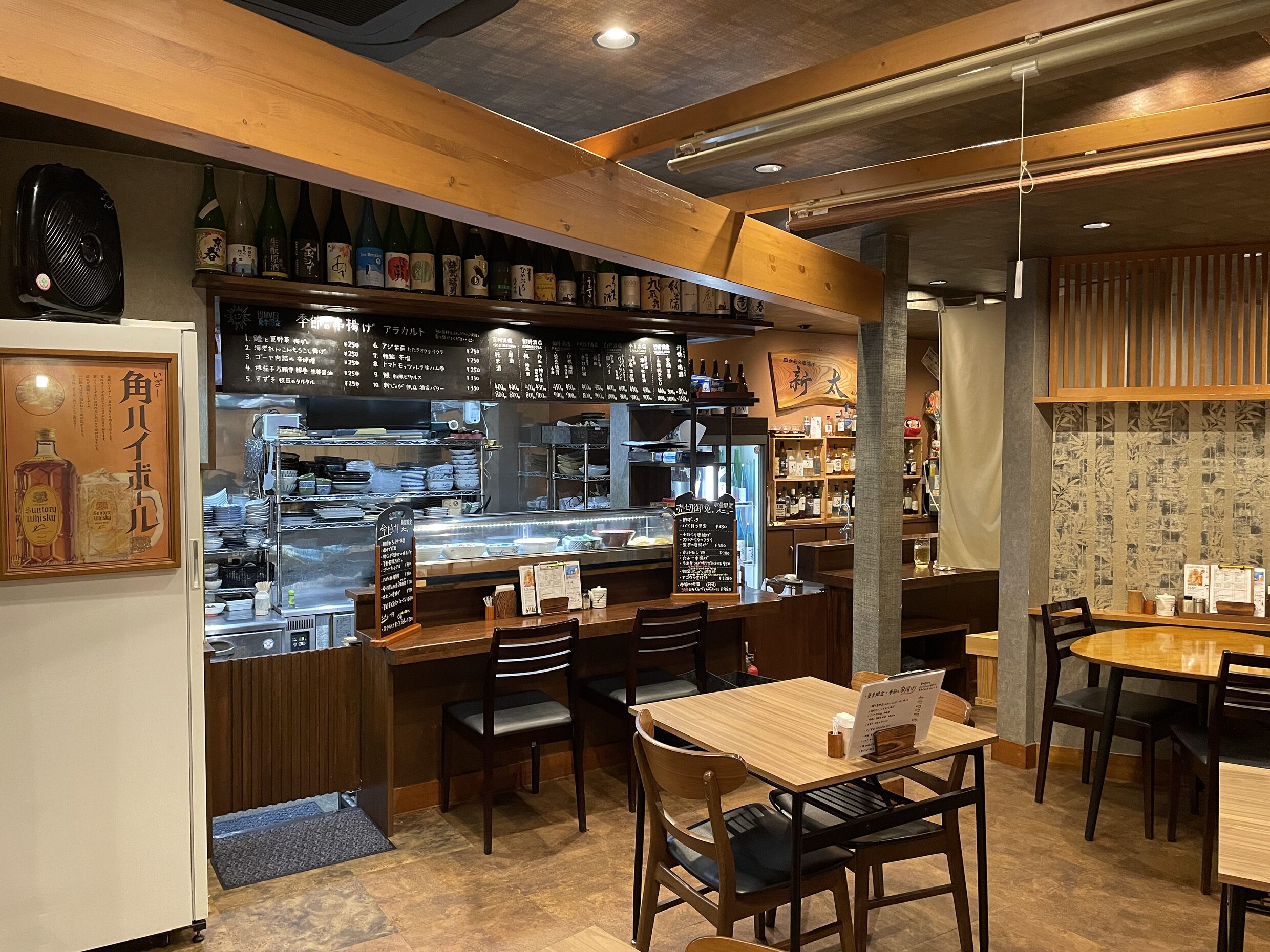 お一人様に人気のカウンター席は、気軽に立ち寄れて心地よく過ごせる空間。テーブル席は人数に応じて調整可能で、ご家族やご友人との集まりに最適です。暖簾仕切りの半個室は静かな会話にぴったり。畳の座敷席は地域の集まりや宴会にもご利用いただけます。どの時間も、どんな人数でも、心地よく過ごせるお席をご用意しています。