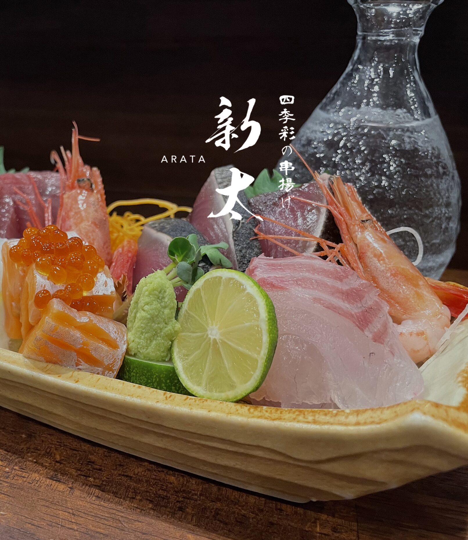 京都丹後の旬素材を気軽に味わえる、串揚げ居酒屋「新太」。地元の魚や野菜を中心に、その日一番の素材を丁寧に揚げてお出ししています。